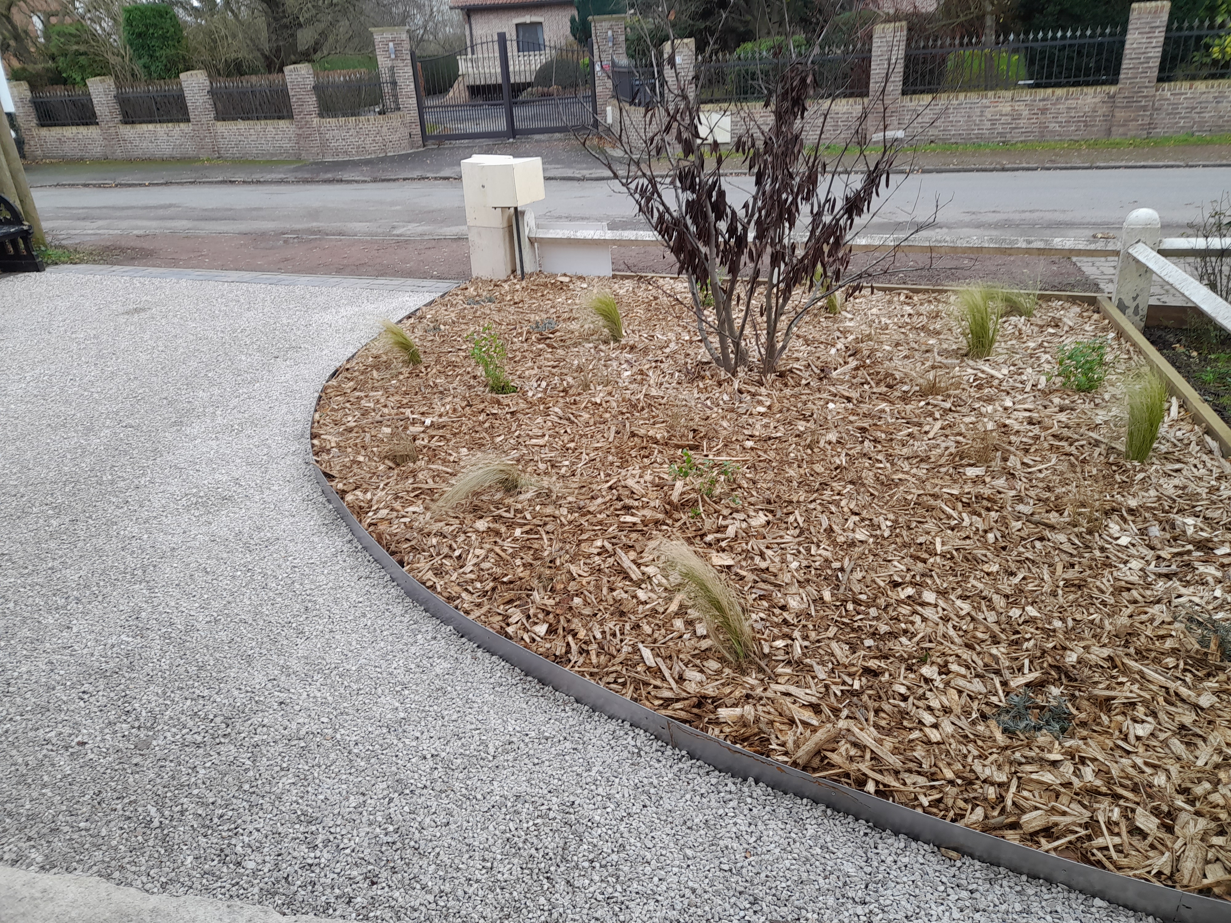 Accès maison réalisé avec soin, beaucoup plus lumineux et végétal que ce que nous avions auparavant. Nous sommes entièrement satisfaits de leur écoute, professionnalisme, réalisation.